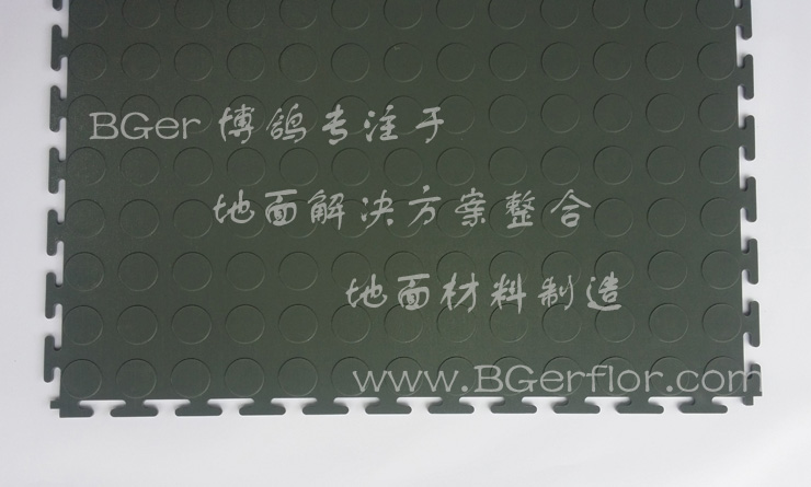 F505_C型工業地板使用特性優勢: ■ 超耐磨、超耐壓承重型、耐油、絕緣;防滑、防潮、防酸堿,耐化學腐蝕,抗老化穩定;防砸、耐沖擊、抗劃傷等;有效緩解腳部疲勞,保護地面。 ■ 表面防滑硬幣紋設計,有效增加摩擦,強力防滑,易于清潔,維護簡便。 ■ 拼接式設計,鋪裝簡便,省時省力;可以在任何基層地面上安裝使用;邊緣是鎖扣設計,相互扣接在一起鋪裝,環環穩固相扣。 ■ 有配套邊,為鋪裝的區域邊緣收邊,保證鋪裝和基層地面無高低落差。 ■ 多種顏色可選擇定制,可定制顏色:綠、灰、黑、藍、紅、黃。可選擇多種顏色組合,對鋪裝空間進行不同顏色鋪設劃分不同區域。 ■ 安裝簡便快速,自由鎖扣拼接鋪裝,不影響正常生產、作業運行,基本無停機時間。 ■ 耐久使用,即使在長期使用過程中,有局部損壞,可隨時快速更換損壞的某塊。