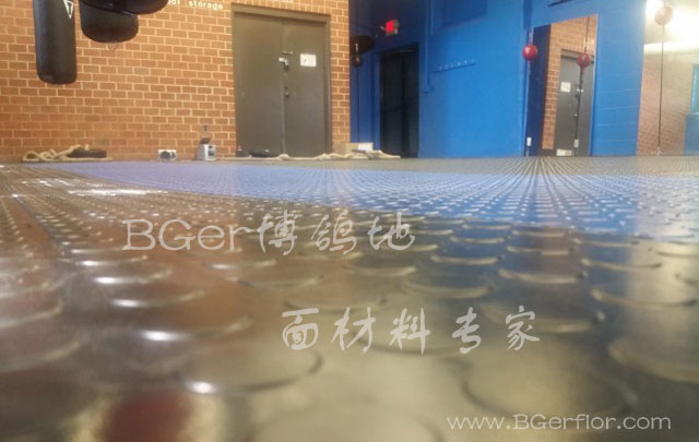 健身房塑膠地板根據人體工程學不規則圓形紋理弧邊設計,使滑動系數為極佳值,使運動員有更佳的活動能力,為各種專業劇烈技術動作提供極具爆炸力的彈性動力結構。